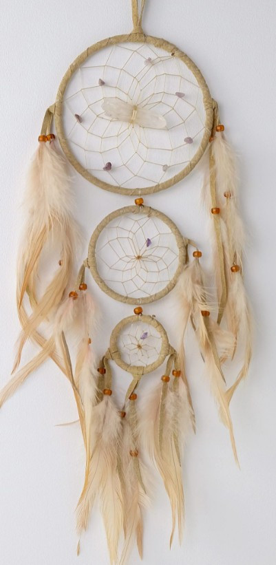 Traumfänger 3 Generationen / Visionssucher in weiss und hellbraun