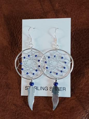 - Traumfängerohrringe mit Lapis Lazuli, aus Silber
