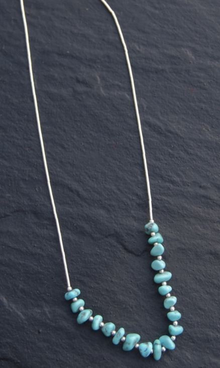 - Türkisperlenkette aus Liquid Silver 45 cm