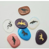 aus Halbedelsteinen UND GLAS, maschinell graviert, detailliert und gut dargestellte Symbole. Als Geschenk, Krafttier, in den Medizinbeutel oder zur Energiearbeit mit Edelsteinen. Hier können die Steine/Material - auch Glas nicht ausgewählt werden, es kommen immer andere bei uns an, ABER wählen Sie das Motiv unten aus. Oder bestellen Sie eine grössere Menge (günstiger), wo wir dann die Symbole/Steine für Sie auswählen dürfen...Made in China. (Wir haben hier einen Posten Ware erhalten, der nicht eindeutig vom Material her zuordenbar ist, wie der Lieferant uns auf Anfrage mitgeteilt hat, mischte er hier auch gefärbtes Glas und gefärbte Edelsteine wie türkis gefärbtes Howlith zum Beispiel in die Lieferung hinein. Anrufe oder Anfragen bezüglich bestimmten Farben akzeptieren wir nicht - wir haben verfügbar, was gerade verfügbar ist.