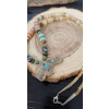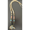 Muschelkette mit Bärenamulett, geschnitzt aus Jaspis, mit Türkis Herzlinie