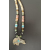 - Muschelkette mit Bärenamulett, geschnitzt aus Jaspis, mit Türkis Herzlinie