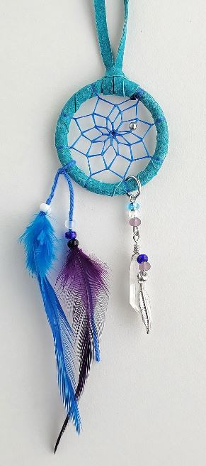 Kleiner Traumfänger mit Kristall, Autotraumfänger - türkis